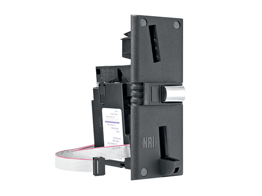 Ce monnayeur dispose d’un système sûr de reconnaissance de pièces utilisant la technique multifréquence NRI. Pour que le processus soit fiable à tout moment, trois paires de bobines et une mesure optique du diamètre se chargent de l’examen des monnaies.