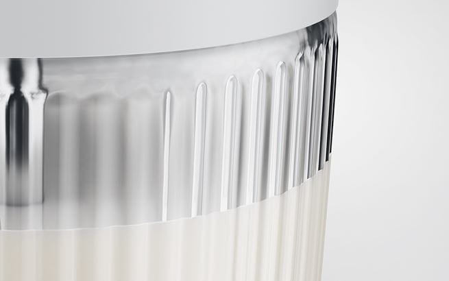 Avec sa surface striée, la carafe à lait est à la fois esthétique et ergonomique. Le couvercle à capuchon pivotant souligne également son aspect fonctionnel et décoratif lors du remplissage. Les deux adaptateurs en silicone bien distincts offrent un système pratique pour l’utilisation de boissons végétales. Par sa taille, la carafe à lait trouve sa place dans chaque réfrigérateur.