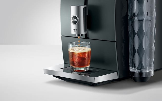 L'ENA 5 se distingue par le standard élevé de la classe compacte et les technologies innovantes de JURA. Elle se présente comme une machine Coffee-only entièrement automatique qui satisfait les amateurs de sensations particulières. Sur son visuel à écran tactile TFT, l'ENA 5 affiche les trois modes de percolation avec des couleurs d'arrière-plan différentes et guide clairement les amateurs de café à travers le menu. Les détails de design de forme ronde de son boîtier, associés à son style rectiligne, attirent l'attention. Le réservoir d'eau orné d'un large motif en forme de diamant et l'écoulement de café chromé attirent également l'attention.