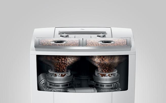 Avec la J8 twin, le monde du café se démocratise. Capable de traiter deux variétés de café différentes, elle offre une multitude d’options pour tous les goûts. Vous buvez du café classique la journée, mais du décaféiné le soir ? Vous aimez marier différentes torréfactions pour préparer vos spécialités de café ? Quelles que soient vos préférences, la J8 exauce vos souhaits.Grâce à sa conception ingénieuse, la J8 twin intègre deux broyeurs P.A.G.3+ performants dans un ensemble compact. Outre leur mouture précise de qualité constante, ils séduisent par leur contrôle d’arôme, une fonctionnalité qui surveille activement la finesse de mouture. Les broyeurs se placent en position de repos entre les préparations, ce qui optimise leur durée de vie tout en assurant un goût toujours parfait.